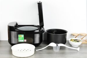 – Dung tích 1.8 lít nấu được 8 – 10 cốc gạo đi kèm theo nồi, đáp ứng tốt khẩu phần ăn cho 4 – 6 người.