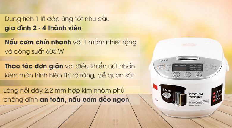 • Nồi cơm Toshiba mini 1 lít cao cấp với 11 chương trình nấu