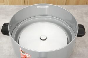 – Lòng nồi có chất liệu nhôm dày 2 mm bền tốt, hạn chế biến dạng, có khả năng truyền nhiệt tốt. Ngoài ra, chất liệu này còn không gây phản ứng với thực phẩm, đảm bảo an toàn cho sức khỏe người dùng.