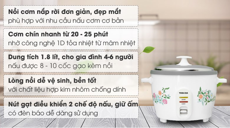 Đánh giá Nồi cơm nắp rời Toshiba 1.8 lít RC-18MH1PV(F)