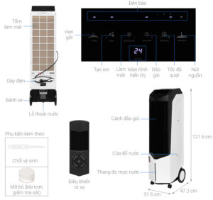 • Quạt điều hòa trang bị điều khiển từ xa giúp tùy chỉnh dễ dàng