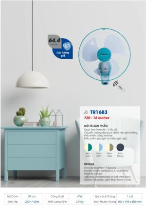 Quạt treo Senko TR1683- Remote