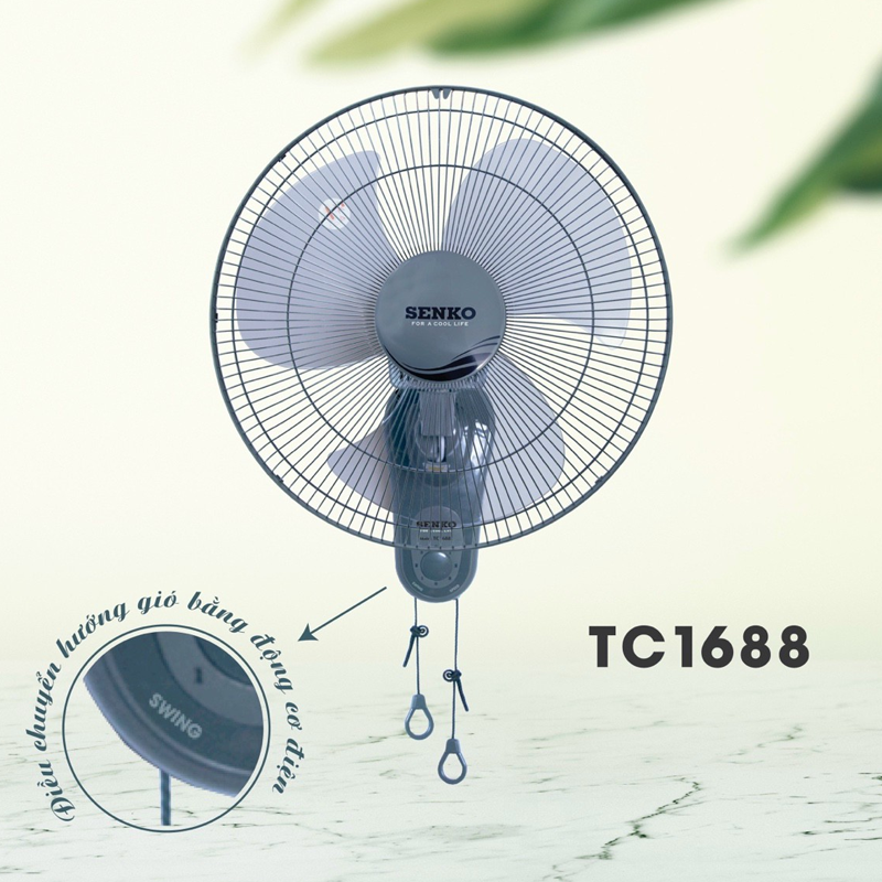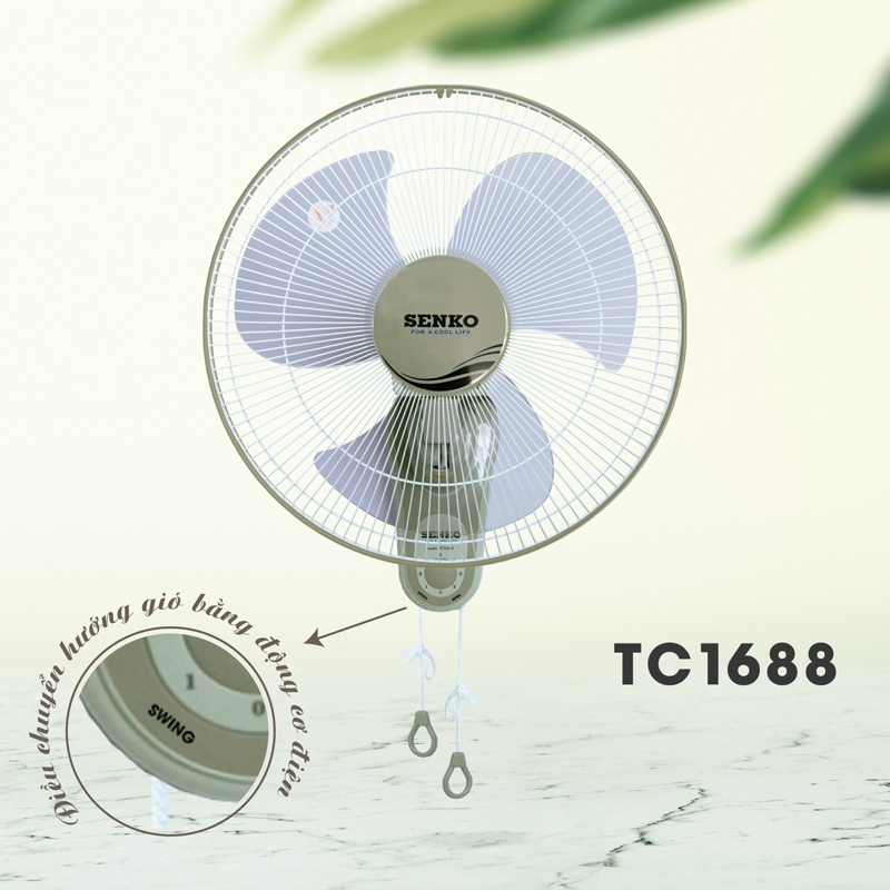 Khi sử dụng thiết bị quạt treo tường Senko TC1688 này, bạn có thể dùng hệ thống 2 dây giật tiện lợi để điều chỉnh tốc độ gió và hướng gió. Cụ thể dây giât Swing (bên trái) dùng để chỉnh đảo chiều gió, còn dây giật Speed (bên phải) dùng để chọn tốc độ gió vô cùng tiện lợi.