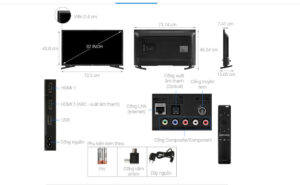 Cổng nhận hình ảnh, âm thanh: 2 cổng HDMI có 1 cổng HDMI eARC (ARC), 1 cổng Composite