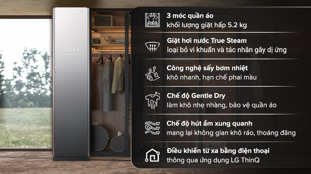 Tủ chăm sóc quần áo thông minh LG Styler Inverter 3 móc S3MFC
