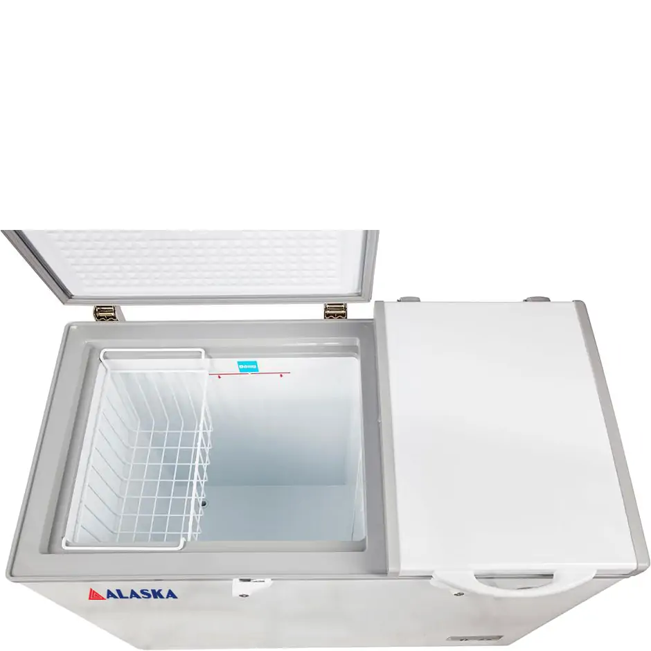Dung tích sử dụng của chiếc tủ đông Alaska này là 210 lít, khá phù hợp để sử dụng trong gia đình. Cùng với trang bị 2 ngăn riêng biệt, người dùng có thể thoải mái lưu trữ đa dạng các loại thực phẩm phục vụ cho những bữa ăn trong gia đình. Ngoài ra với cũng người dùng cần lưu trữ thực phẩm phục vụ cho hoạt động kinh doanh có quy mô nhỏ thì vẫn có thể sử dụng chiếc tủ đông mát Alaska này.