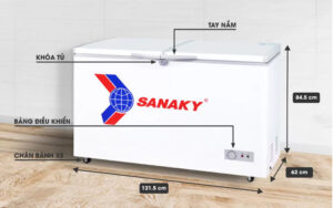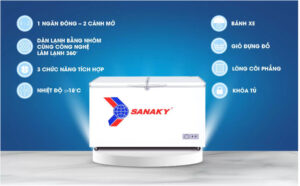 - Tủ đông Sanaky VH-365A2 có thiết kế 1 ngăn đông và 2 cánh mở mang đến sự tiện lợi cho bạn trong việc tìm kiếm và sắp xếp thực phẩm trong tủ cũng như giảm bớt tình trạng hơi lạnh thoát ra ngoài gây tiêu hao điện năng.