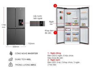 - Tủ Lạnh Electrolux Inverter 492 Lít EQE4960A-B thuộc dòng tủ nhiều cửa, tinh gọn nhưng vẫn mang lại không gian lưu trữ rộng rãi cho các loại thực phẩm.
