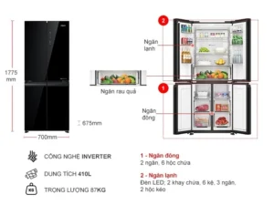 – Mẫu tủ Multi Door với thiết kế 4 cánh độc lập, các ngăn được phân chia thông minh cùng dung tích lớn lên đến 410 lít cung cấp cho bạn khả năng lưu trữ rộng rãi.
