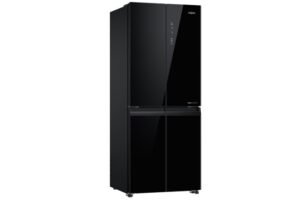 – Cửa tủ lạnh được thiết kế với mặt kính màu đen chủ đạo, mang lại vẻ hiện đại, sang trọng cho không gian bếp. Bề mặt này giúp việc vệ sinh tủ dễ dàng, chống trầy xước và giữ cho tủ lạnh luôn sáng bóng và mới mẻ.