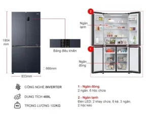 – Dung tích sử dụng 469 lít của tủ thoải mái đáp ứng nhu cầu sử dụng của các gia đình có từ 4 – 5 thành viên.