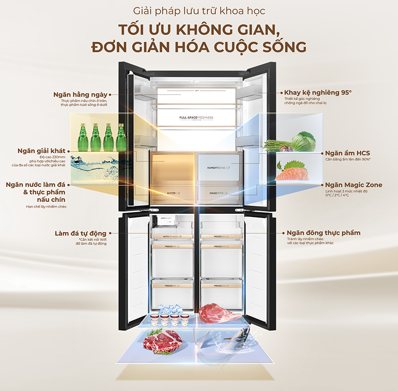 • Ngăn Magic Zone linh hoạt, bảo quản đa dạng thực phẩm luôn tươi ngon trong thời gian dài.