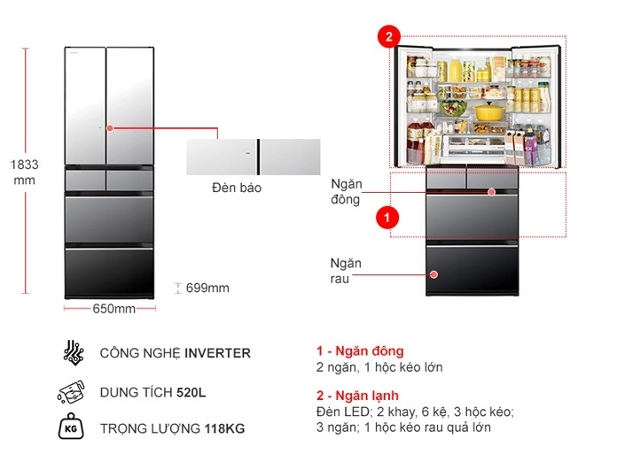 Đánh giá Tủ lạnh Hitachi Inverter 540 lít Multi Door R-HW540RV(X)