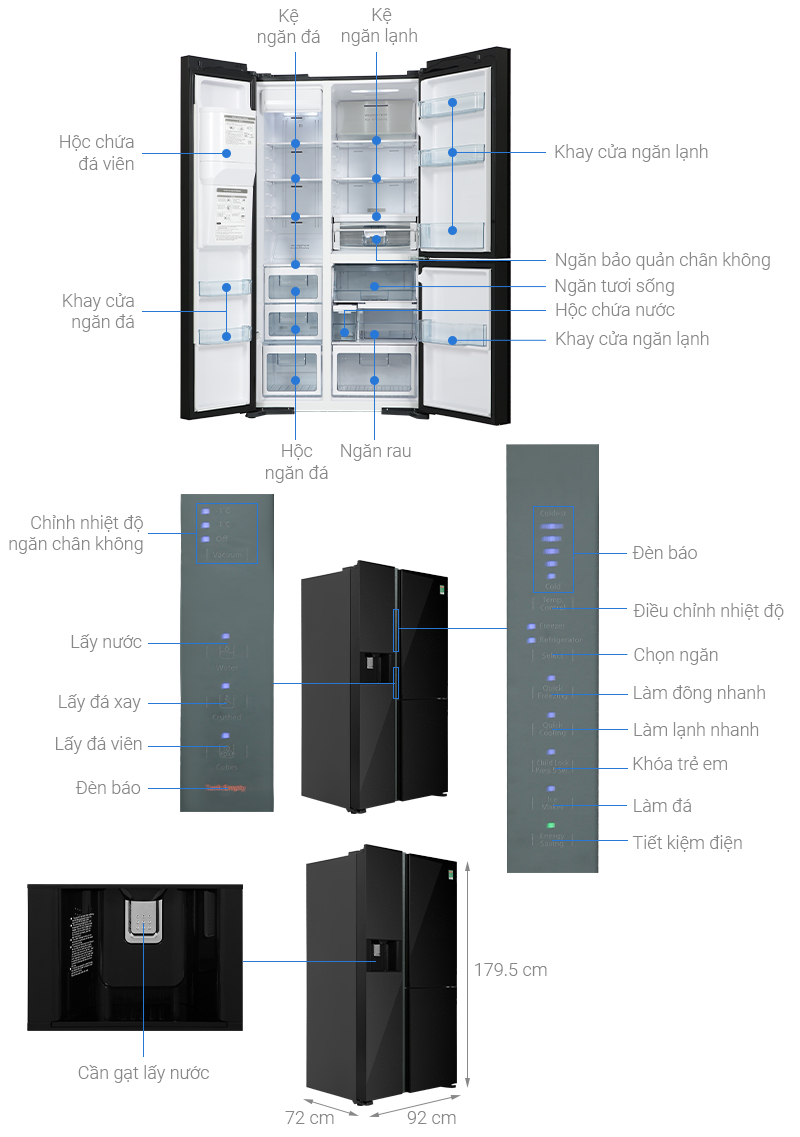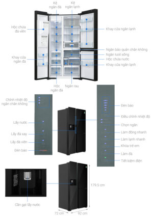 • Tủ lạnh side by side dung tích 569 lít thích hợp cho gia đình 5 – 7 người