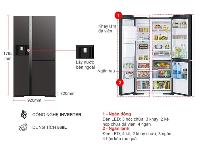 Đánh giá Tủ lạnh Hitachi Inverter 569 lít R-MX800GVGV0(GMG)