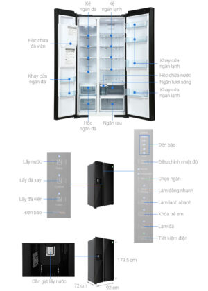 • Tủ lạnh side by side dung tích 573 lít thích hợp cho gia đình 5 – 7 người