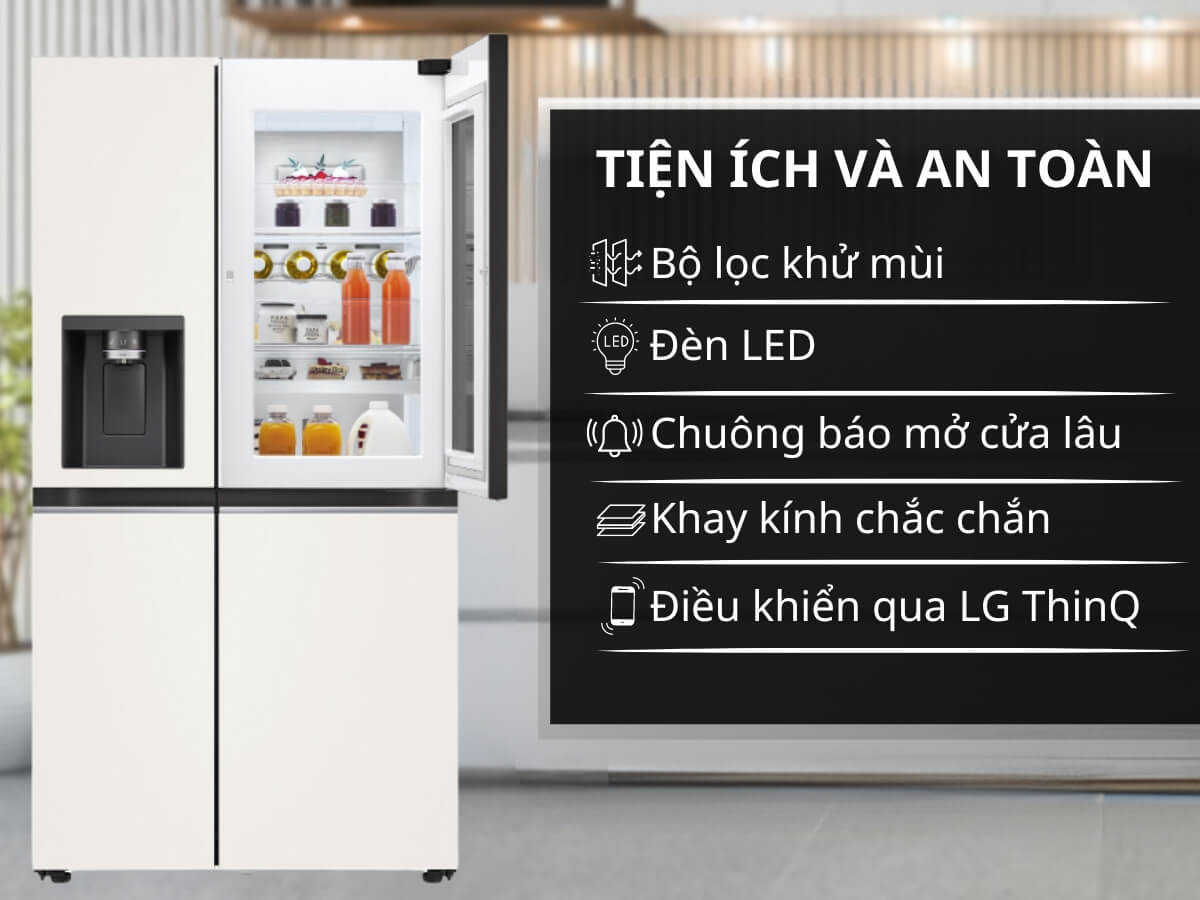 – Tủ lạnh Side By Side hiện đại kết hợp cùng cửa phụ InstaView Door-in-Door góp phần tăng tính thẩm mỹ cho không gian nội thất trong nhà thêm sang trọng.