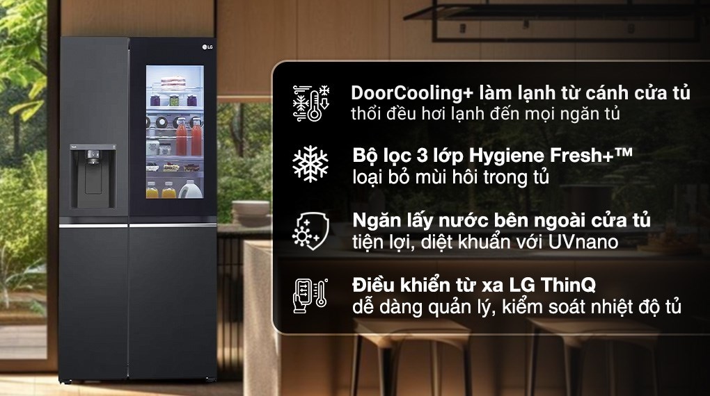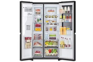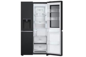 – Điểm khác biệt của chiếc tủ lạnh này là thiết kế dạng Side By Side và được kết hợp thêm cánh cửa phụ InstaView giúp tủ trông sang trọng hơn. Cánh cửa phụ này giúp bạn có thể lấy thực phẩm thông qua phần cánh cửa phụ mà không cần mở toàn bộ cánh, ngoài ra với thao tác gõ nhẹ 2 cái lên cánh tủ đèn sẽ tự động bật sáng giúp bạn dễ dàng thấy được lượng thực phẩm có bên trong.