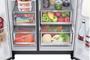 – Công nghệ DoorCooling+ sẽ tỏa hơi lạnh từ ngoài phần cánh cửa tủ, giúp luồng khí lạnh đi đồng đều hơn vì thế mà có thể bảo quản tốt các loại thực phẩm ngay cả những loại để ngoài gần cánh cửa.