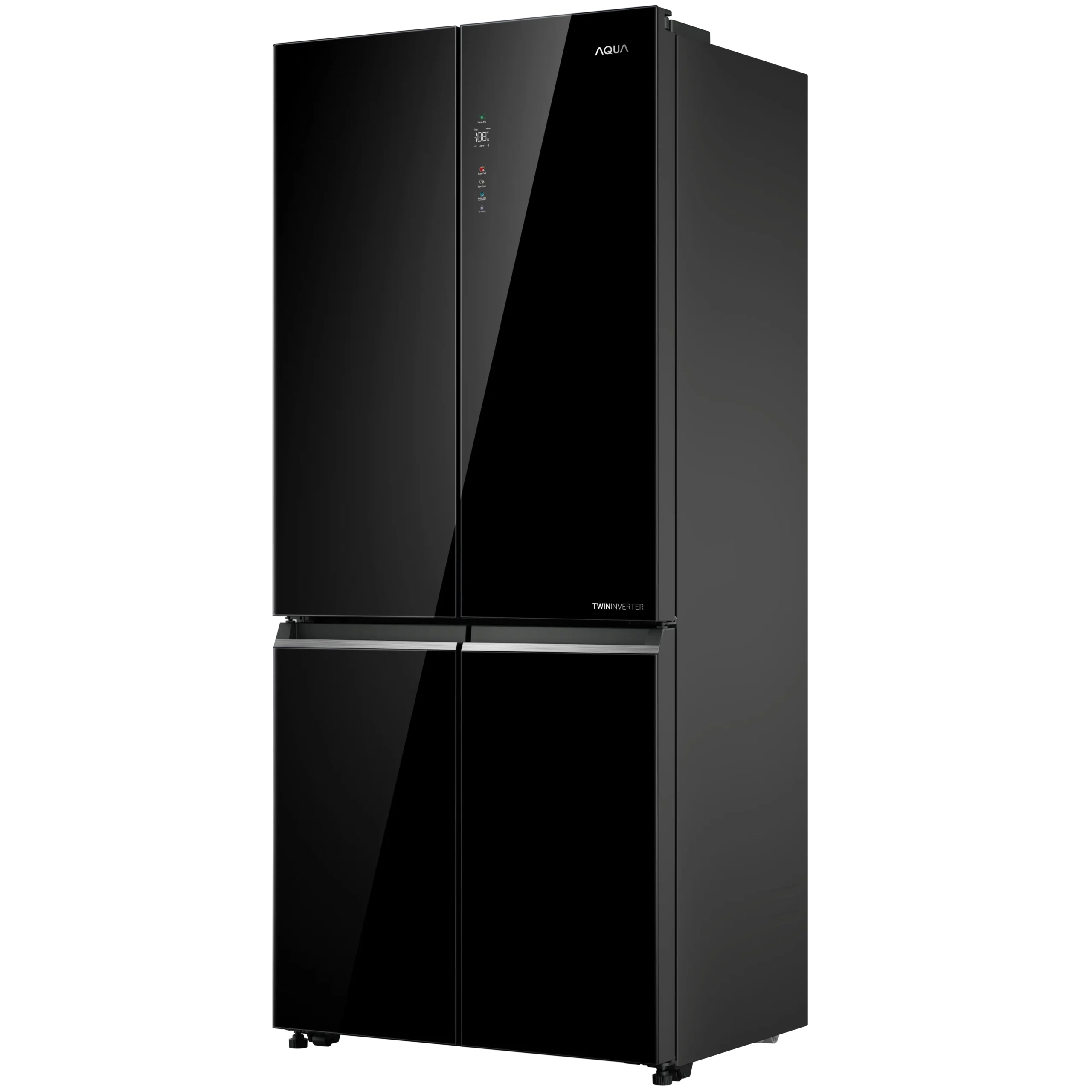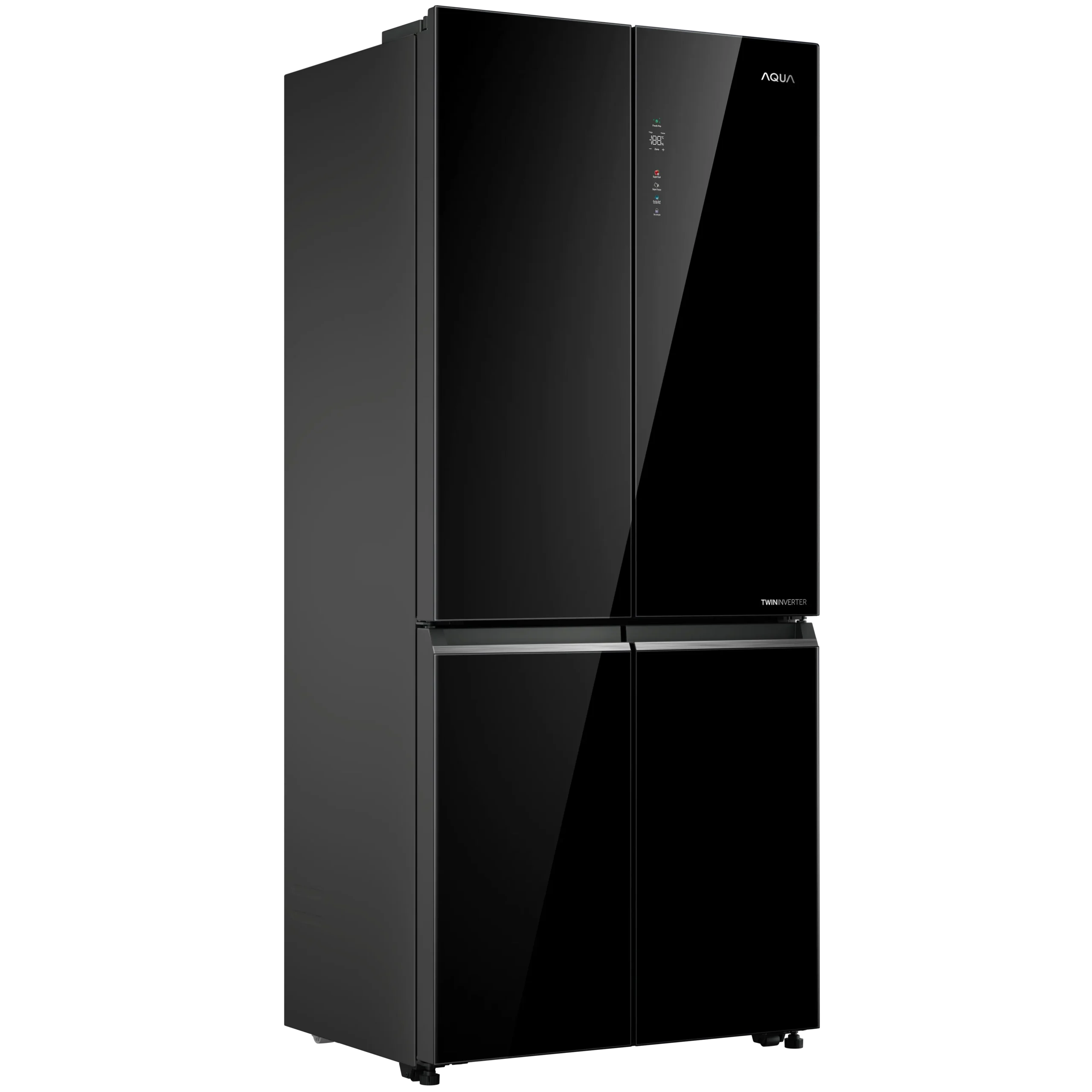 - Tủ lạnh Aqua AQR-M600XA(GB) 4 cánh được trang bị công nghệ Twin Inverter, giúp tiết kiệm điện năng tối ưu mà vẫn đảm bảo hiệu suất làm lạnh mạnh mẽ. Công nghệ này sử dụng hai bộ điều khiển Inverter độc lập cho ngăn lạnh và ngăn đông, giúp giảm thiểu tiêu thụ năng lượng và vận hành êm ái. Nhờ vậy, tủ lạnh hoạt động hiệu quả hơn, duy trì nhiệt độ ổn định và bảo quản thực phẩm lâu dài, đồng thời giảm chi phí điện năng cho gia đình.