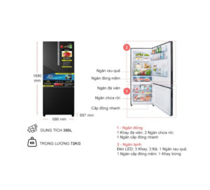 • Tủ lạnh ngăn đá dưới dung tích 380 lít thích hợp cho gia đình 3 – 4 người