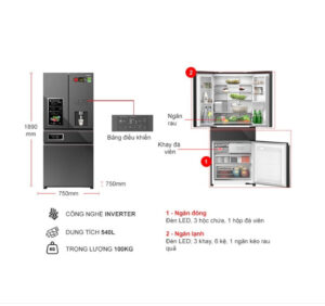 • Tủ lạnh Panasonic dung tích 540 lít phù hợp cho gia đình có khoảng 5 thành viên