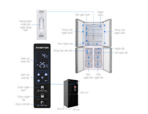 • Tủ 4 cửa (Multi Door) mặt gương đen cao cấp, tạo vẻ đẹp hiện đại cho gian bếp.