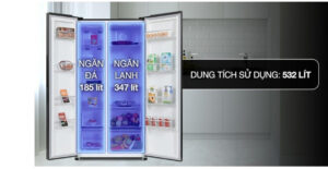 Dung tích sử dụng 532 lít phù hợp với nhu cầu lưu trữ thực phẩm cho gia đình 3-5 người