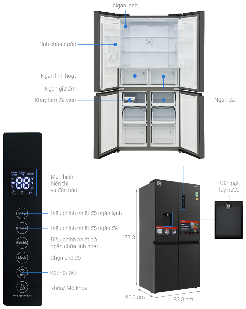 - Với tính năng điều khiển từ xa qua ứng dụng TSmartLife, người dùng có thể dễ dàng điều chỉnh nhiệt độ, chế độ làm lạnh, chế độ ngày nghỉ hay làm đông nhanh chỉ bằng một chiếc điện thoại thông minh. Điều này mang lại sự thuận tiện và linh hoạt cho người sử dụng, đặc biệt trong những tình huống bận rộn khi không thể trực tiếp điều chỉnh tủ lạnh.